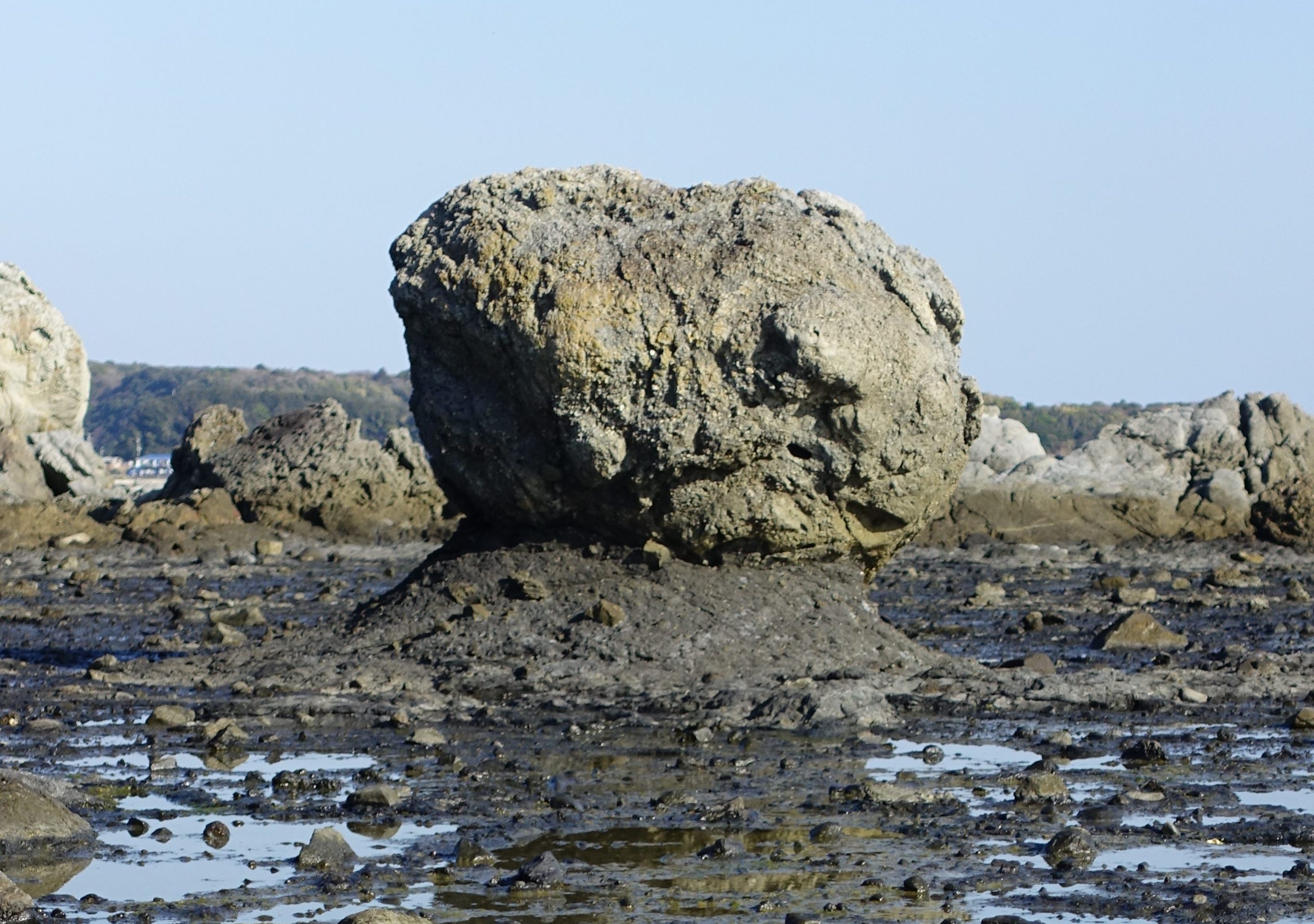 地層は泥岩で、その部分が浸食されさらし首のように見える。